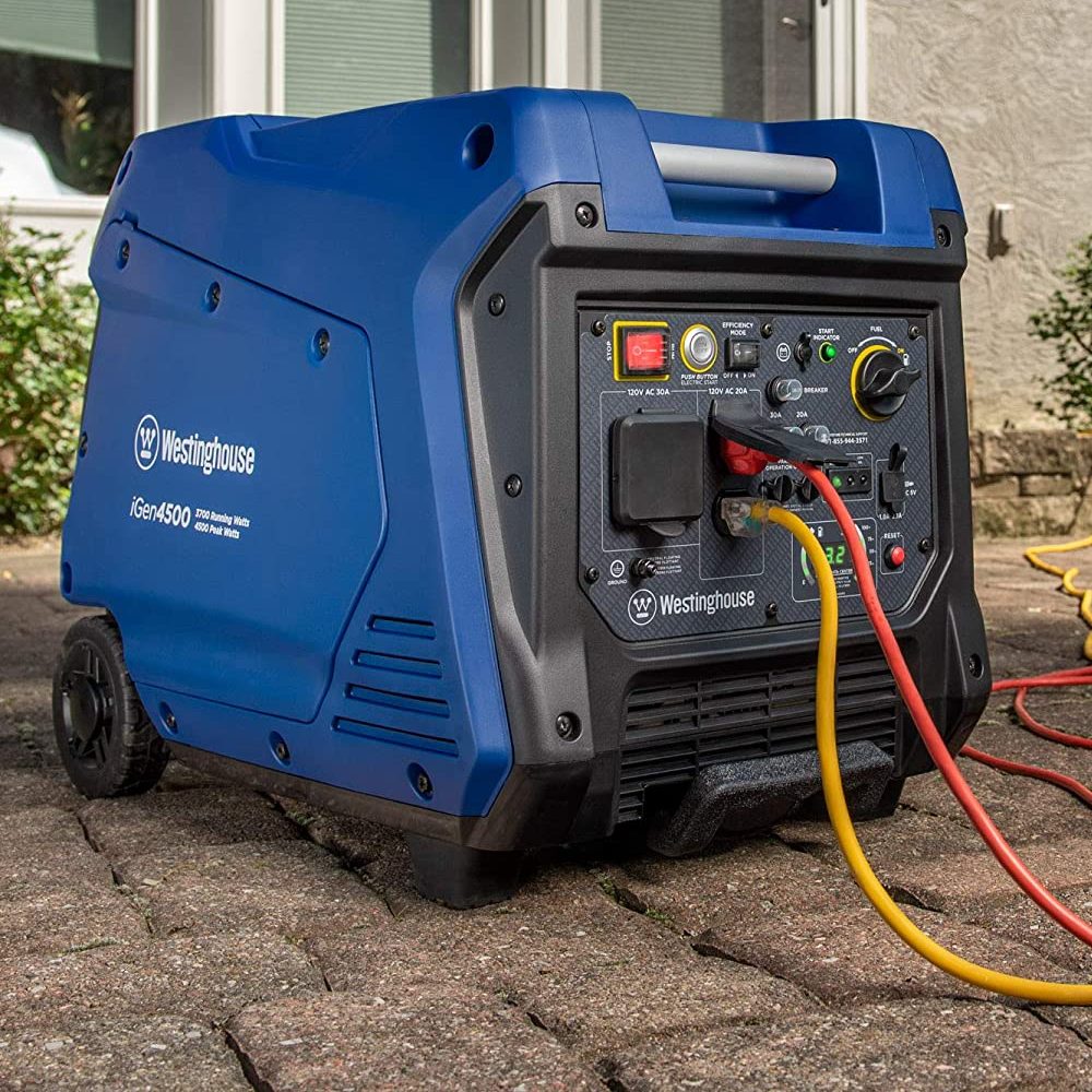 I have this portable gas inverter generator, with a 3700 watt continuous output and 4500 watt peak output. It is compliant for use in California with their stricter emissions requirements. They also make Duel Fuel generators that can be connected to a propane tank as well as use gasoline. One benefit of this is that propane tanks are easier to store than gasoline cans. You can use a meter like this to see how much power your appliances use to see what size generator will work for your needs. Some of these generators offer the ability for parallel operation, which allows you to connect two together for increased output and capacity. With a generator this size, you won’t be able to run an AC unit during a summer brownout.
