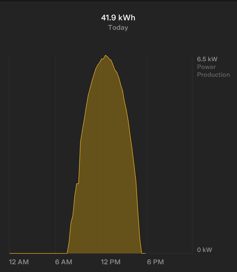 Tesla used an estimate of about 4 hours of peak production a day x 365 days a year to arrive at the annual kWh (this estimate will vary by angle, orientation, region, system, installer and other factors) for our system. If we want to estimate the amount of energy our system will produce in a day we take the system size x 4 hours, for us that is 10.525 kW x 4 hours = 42.1 kWh a day, meaning we could run our AC for 5 hours a day with 12.1 kWh of energy for lights, TV, appliances, computers, etc. These are just estimates since weather, time of year, system performance and other factors will impact your production.