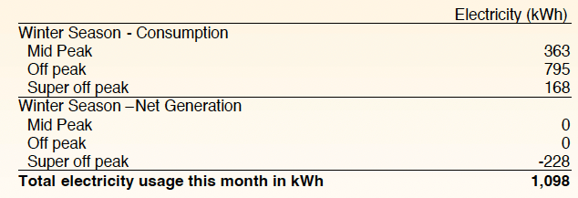 This is important because your energy production is only netted out depending on when it was produced. So it isn’t as simple as saying I use 40 kWh in a day and I produce 42 kWh in a day so I should not have to pay for power. When you use and when you produce comes into play, almost all of your production will take place during Super Off-Peak hours or Off-Peak hours and be worth less for energy offset if you are using a lot of power during Mid-Peak or On-Peak hours.